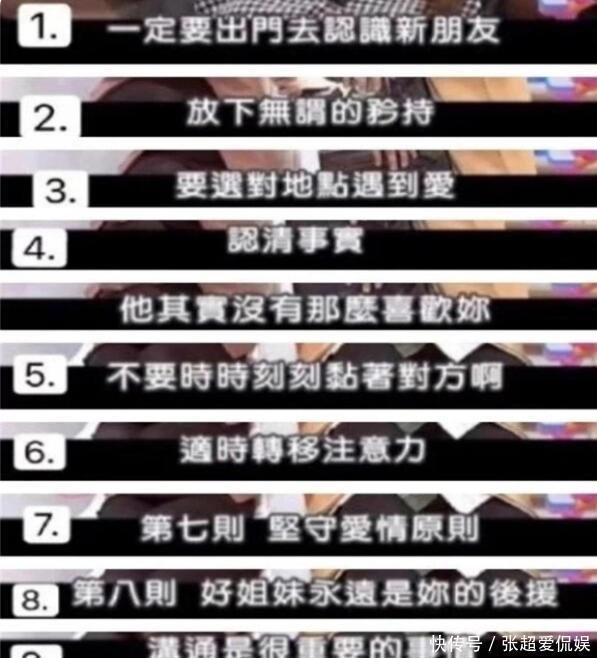 她的恋爱套路一直挺果断:喜欢就直接要联系方式,不合就干脆分手,绝不拖拖拉拉。还曾在一档综艺里,整理出了一套属于自己的“十大恋爱守则”。